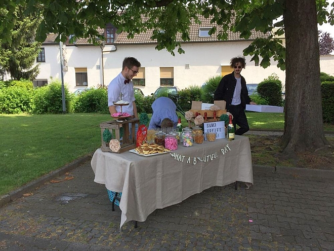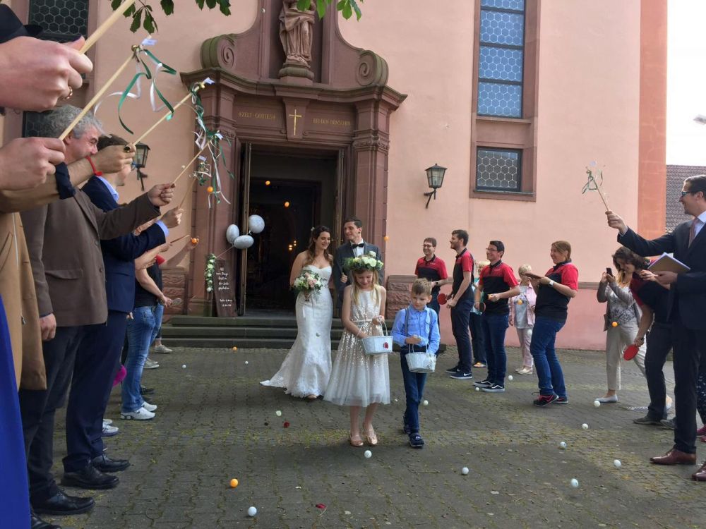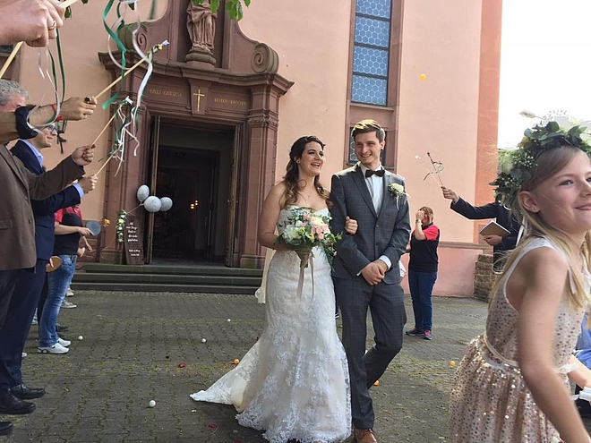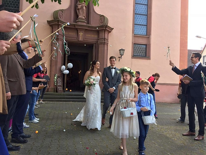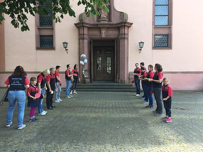 Sie sind hier: Verein / Fotos / Hochzeit 2018 Hochzeit Sophia und Marco, 19.05.2018 Wir waren 13 SC-Spalier, alles OK? SC-Spalier, Jürgen korrigiert nach Das Brautpaar kommt, Bälle los! Überraschung gelungen... ...man sieht es Marco an! Ein strahlend schönes Paar Gruppenbild mit dem glücklichen Paar Jetzt erst an die Snackbar... Fotos: Daniela Baum, Larissa Cibis und Christian Knaf